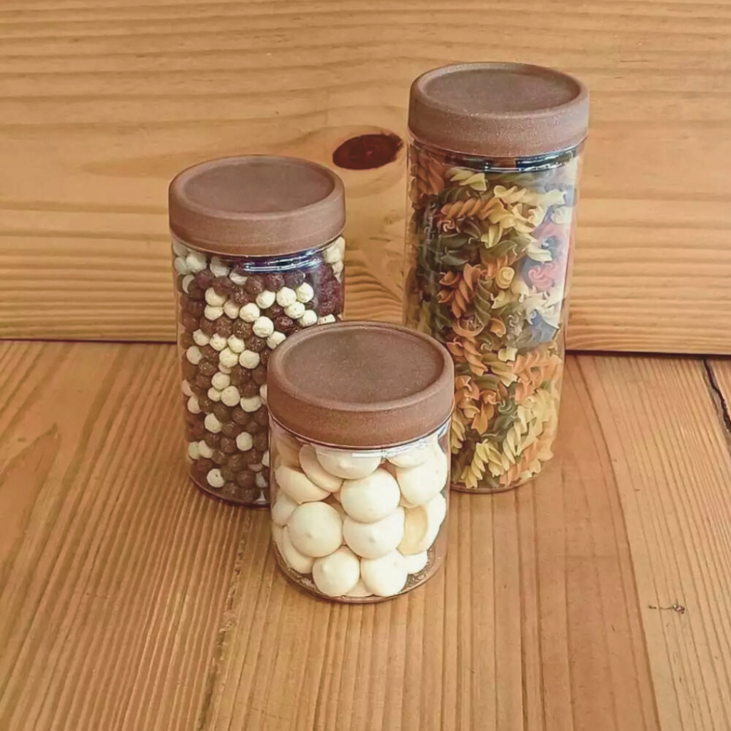 Kit 3 Potes Com Tampa Rosca Amadeirado 650ml/1100ml/1400ml
